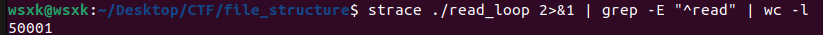strace ./read_loop 2>&1 | grep -E "^read" | wc -l