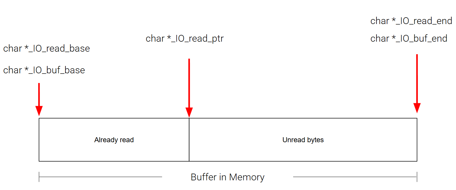 如果当前buffer的内容已经被读取完毕,_IO_read_ptr会重置成_IO_read_base,并调用系统调用从文件中重新读取内容填充到buffer中。