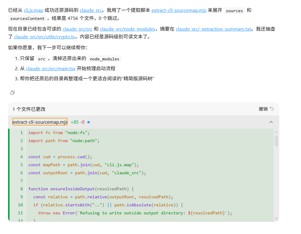 而cli.js.map文件,可以理解为开发人员在生成cli.js时的调试文件,用于把压缩/编译后的 cli.js,映射回原始源码,方便调试、报错定位、逆向分析。