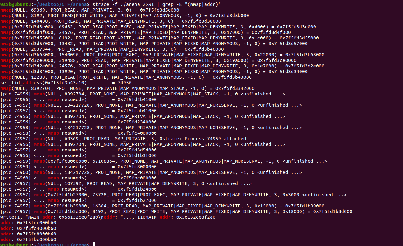 //strace -f ./arena 2>&1 | grep -E "(mmap|addr)"